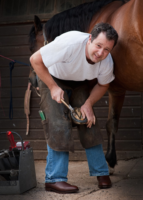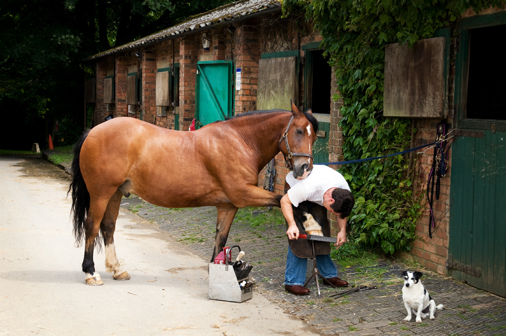 Luther the horse and Nick are old friends, he also likes to be well shod! Nick's Jack Russell Steve is his constant companion and thankfully he doesn't chew shoes.